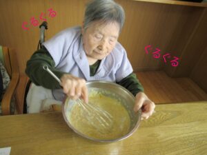 おやつ作りは 「どら焼き」でした!! 朝から まぜまぜ・・